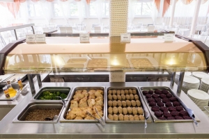 В санатории «Светлана» лечение может быть не только полезным, но и вкусным. Уже не одно поколение туристов знает великолепную кухню здравницы, славящуюся большим разнообразием основных блюд, закусок, свежей выпечки, фруктов и овощей. В столовой санатория гостей ждет сытное и полезное питание, созданное по системе «Шведский стол». Предлагаются путевки на базе завтрака или 3-разовое питание полный пансион. Среди большого ассортимента блюд русской, европейской и национальной кавказской кухни каждый сможет найти любимое блюдо по вкусу. Каждому из посетителей здесь всегда найдется место, ведь столовая здравницы состоит из 7 просторных залов с уютными красиво сервированными столиками и приятной цветовой гаммой интерьера.